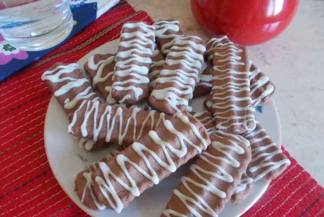 Experimentând cu rețetele de biscuiți șprițați, am descoperit o variantă delicioasă: biscuiți cu cacao, glazurați cu ciocolată
